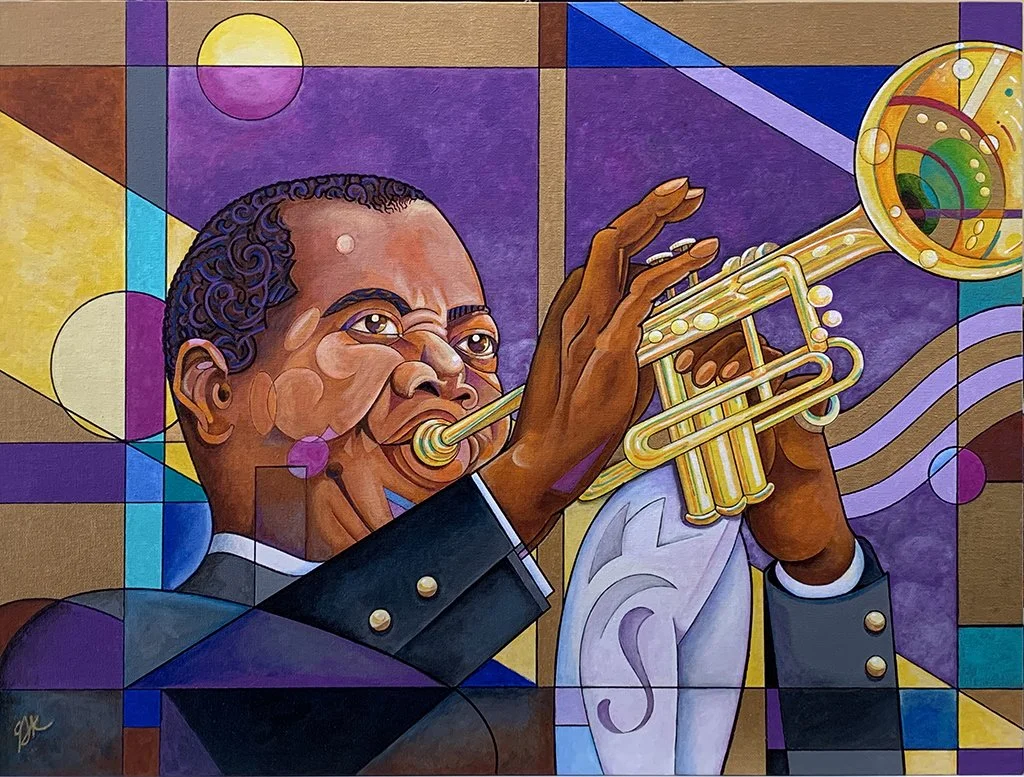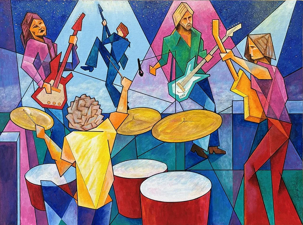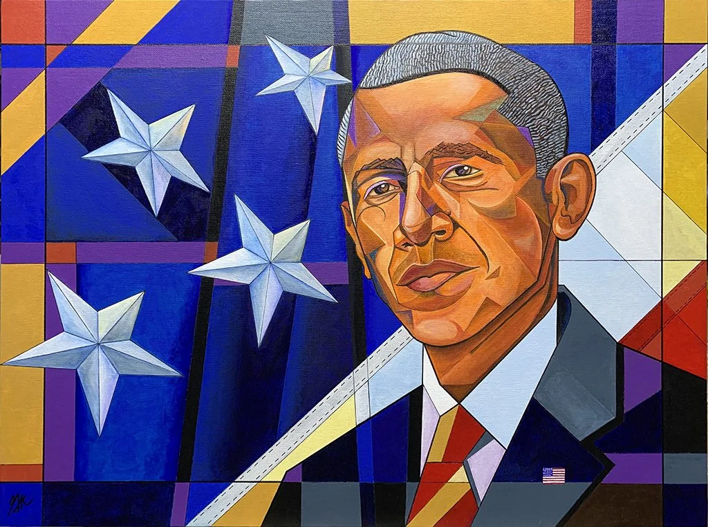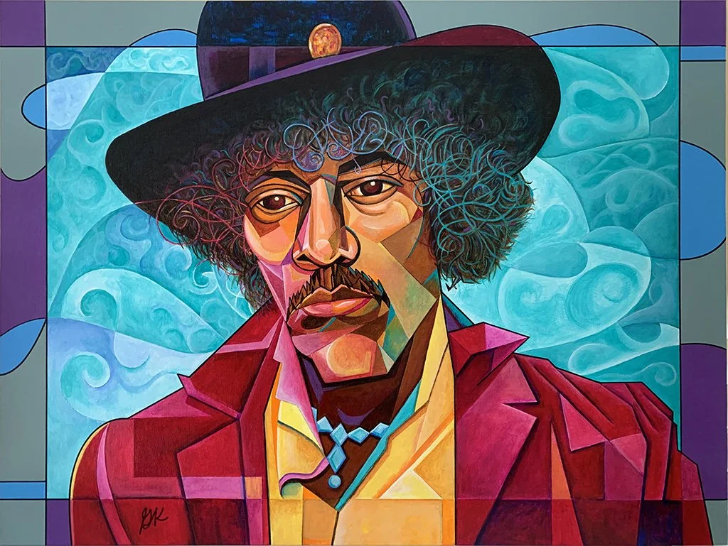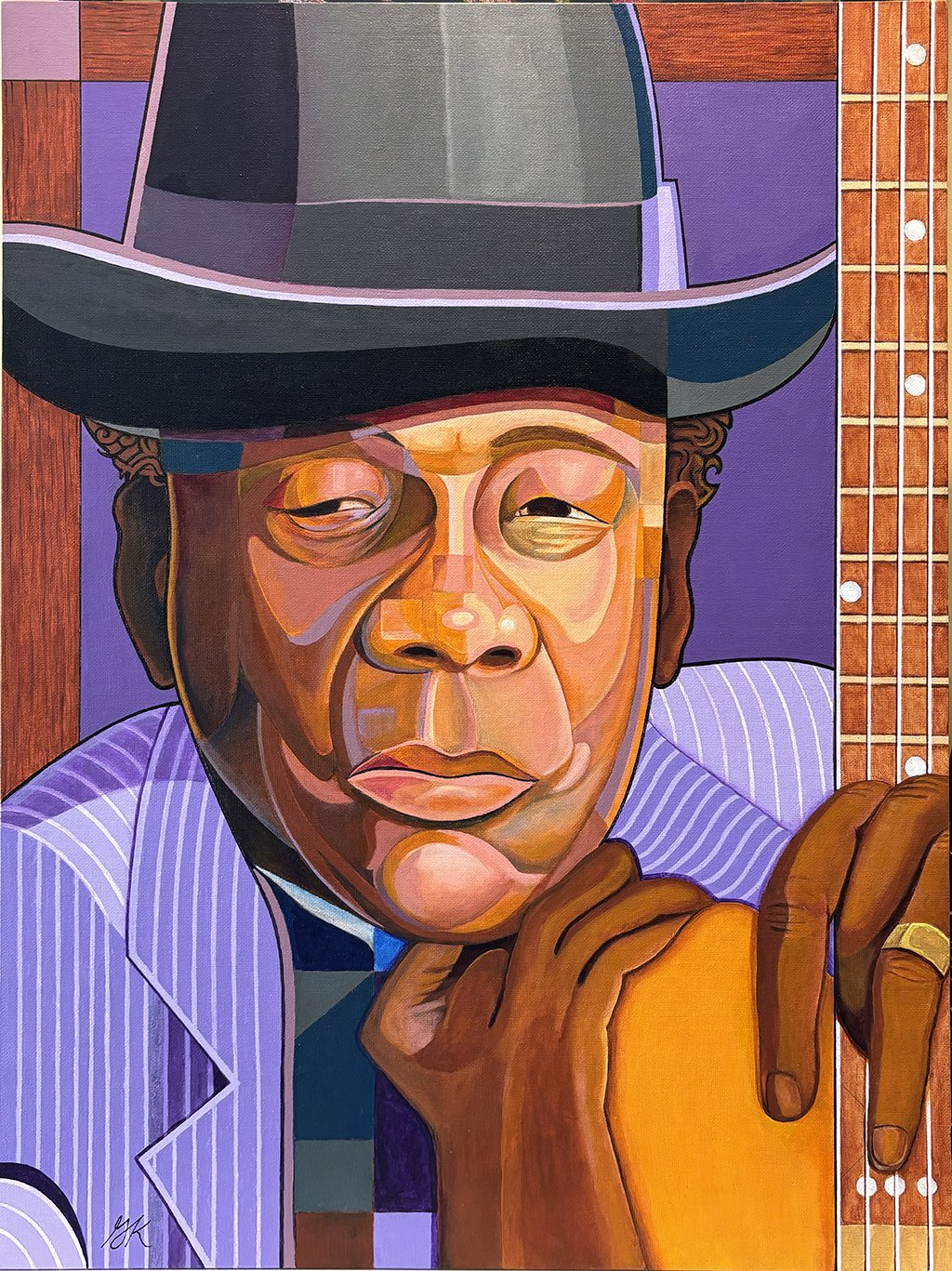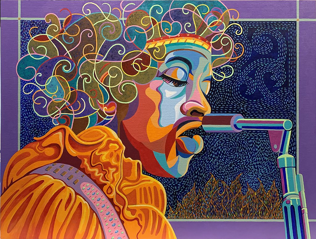 Original works of art — acrylic paint on canvas board, 18″ × 24″. Bold expressionist portraits and landscapes that celebrate color, character, and story.