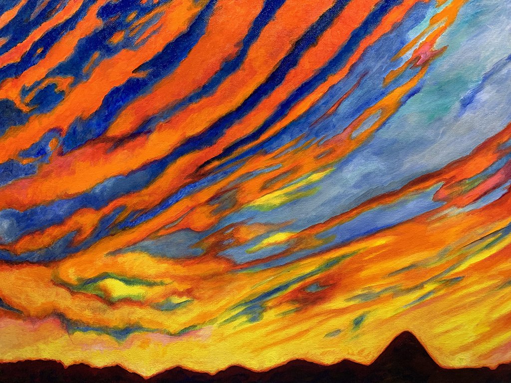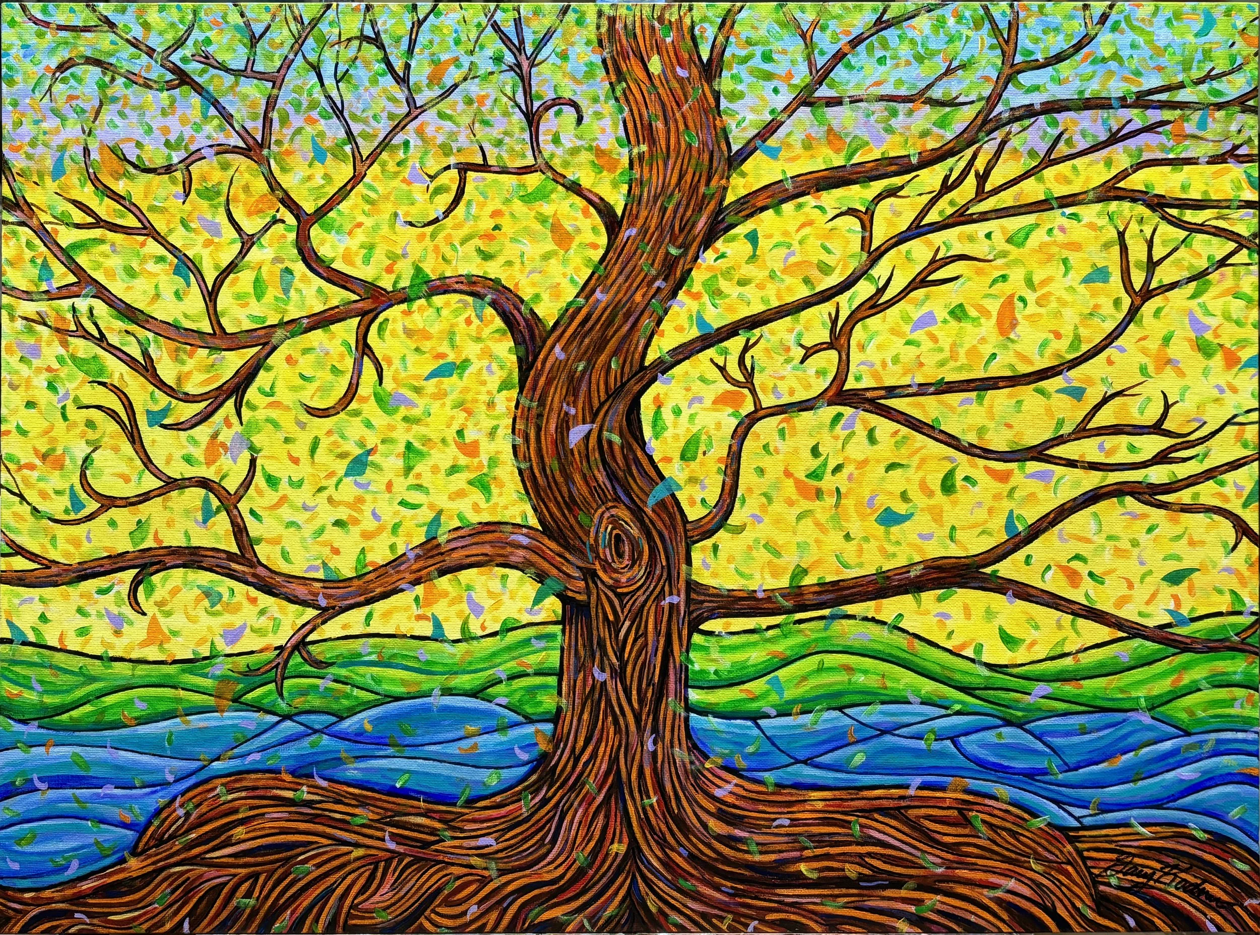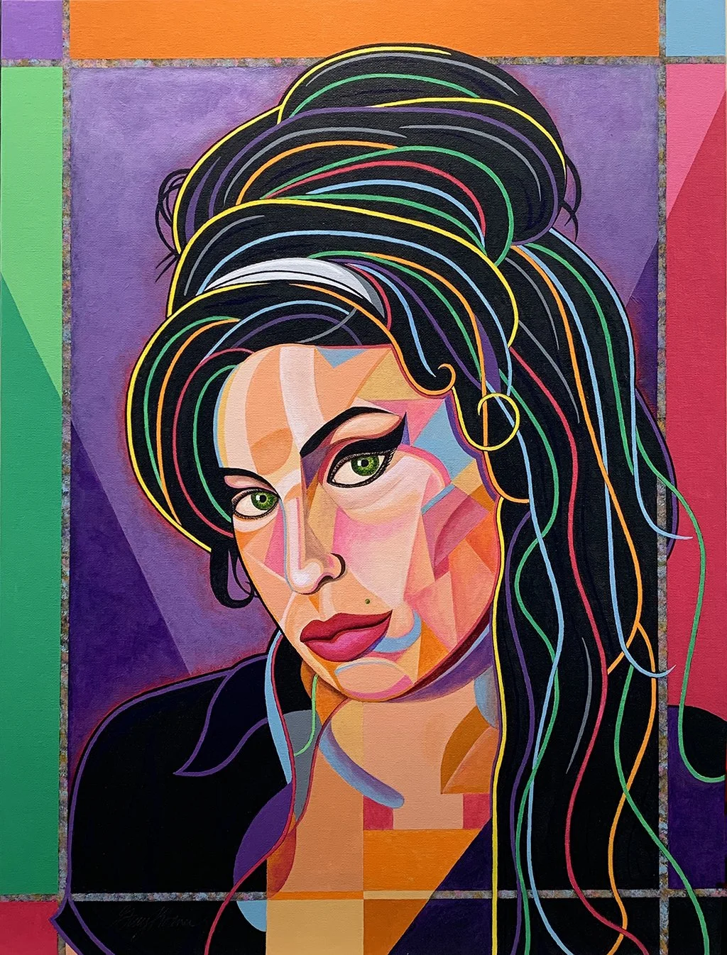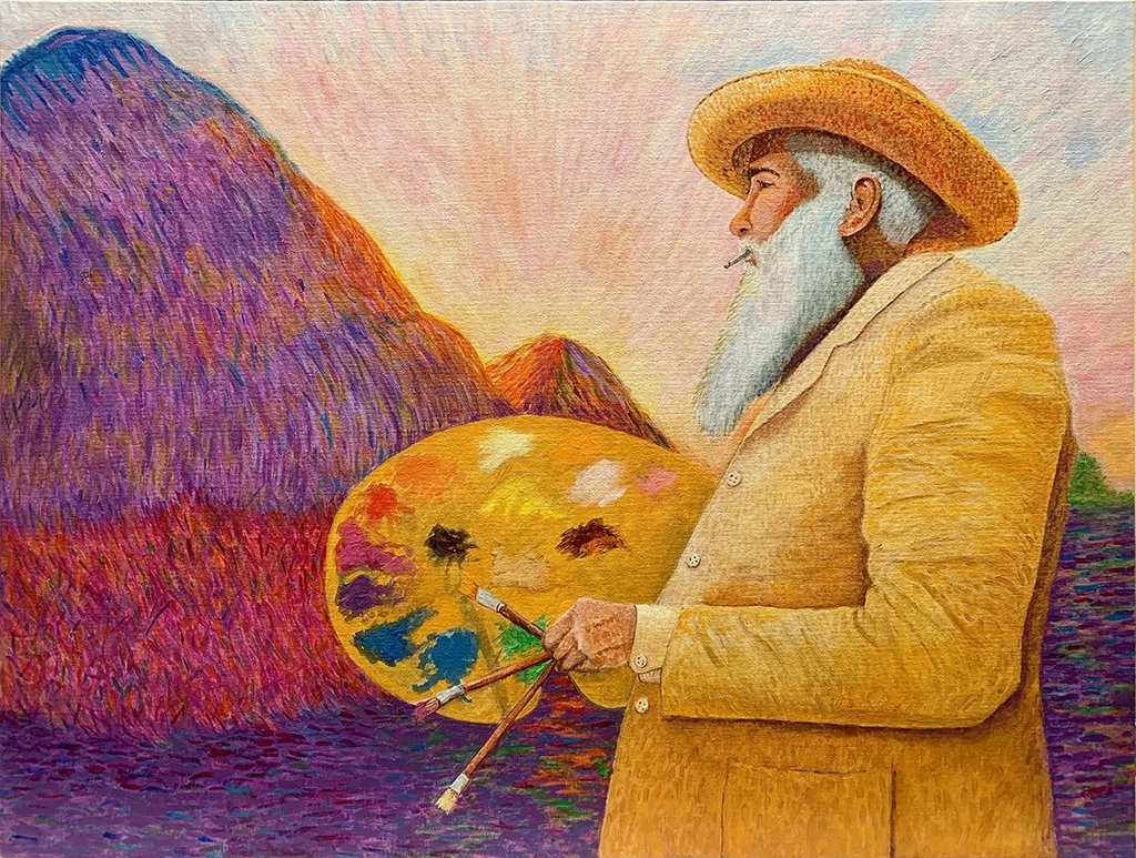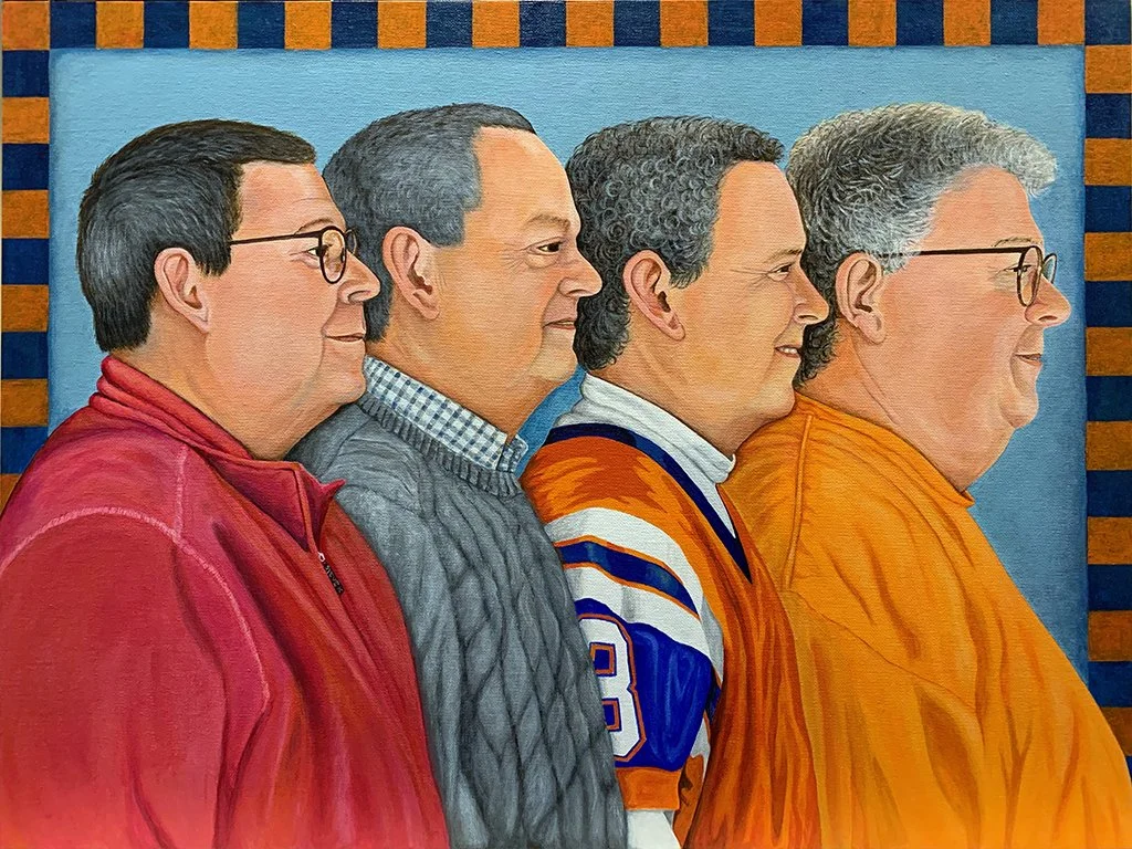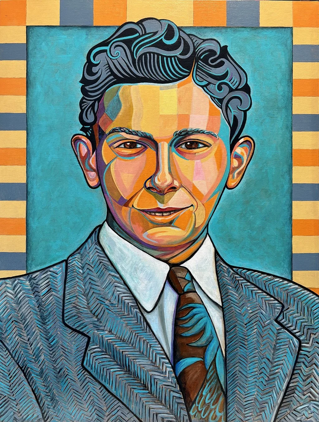Original works of art — acrylic paint on canvas board, 18″ × 24″. Bold expressionist portraits and landscapes that celebrate color, character, and story.