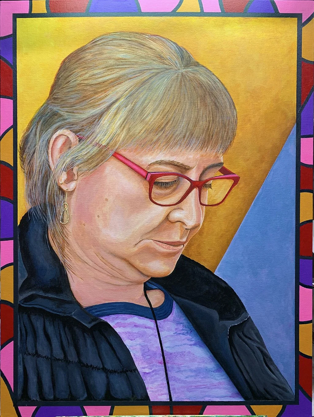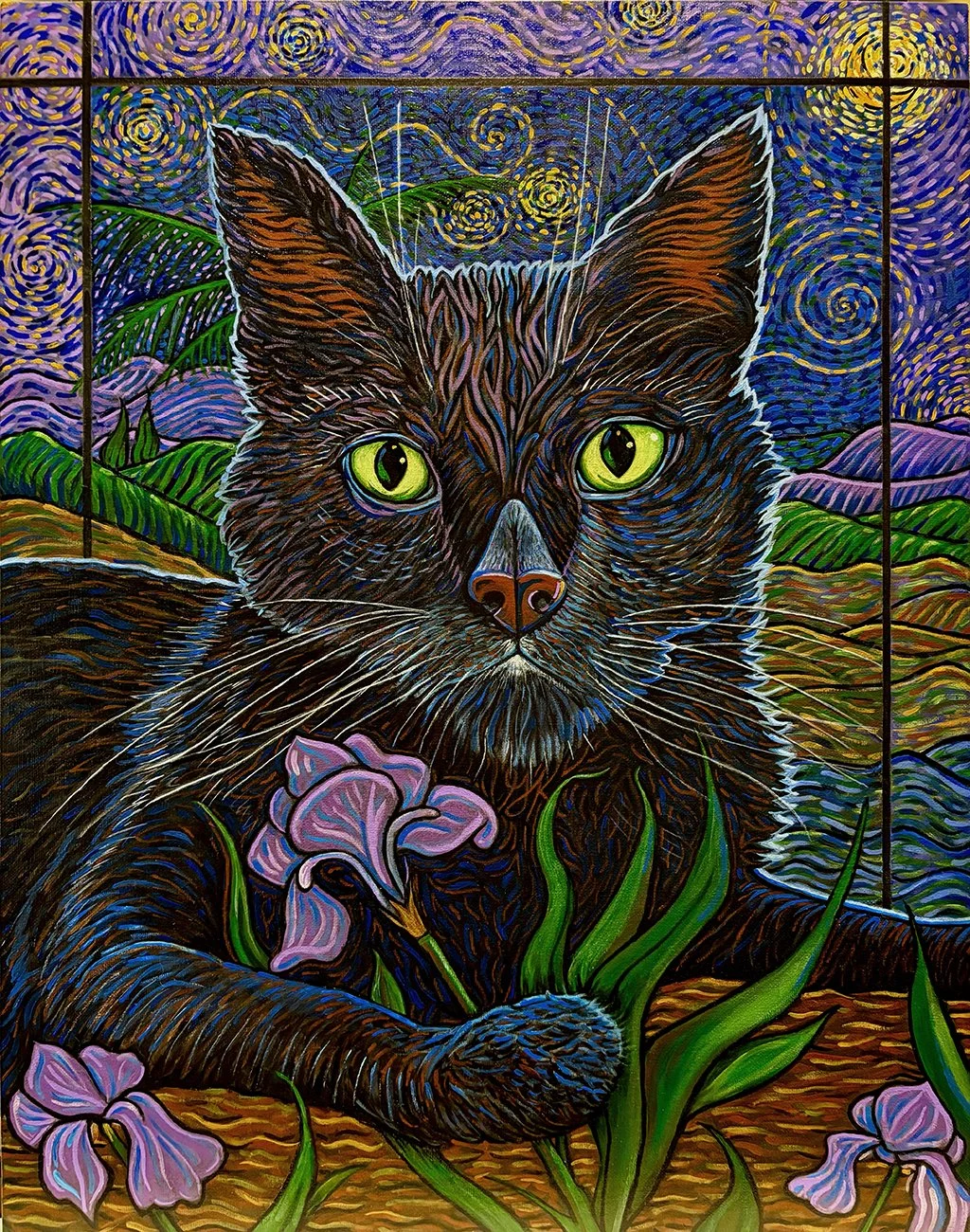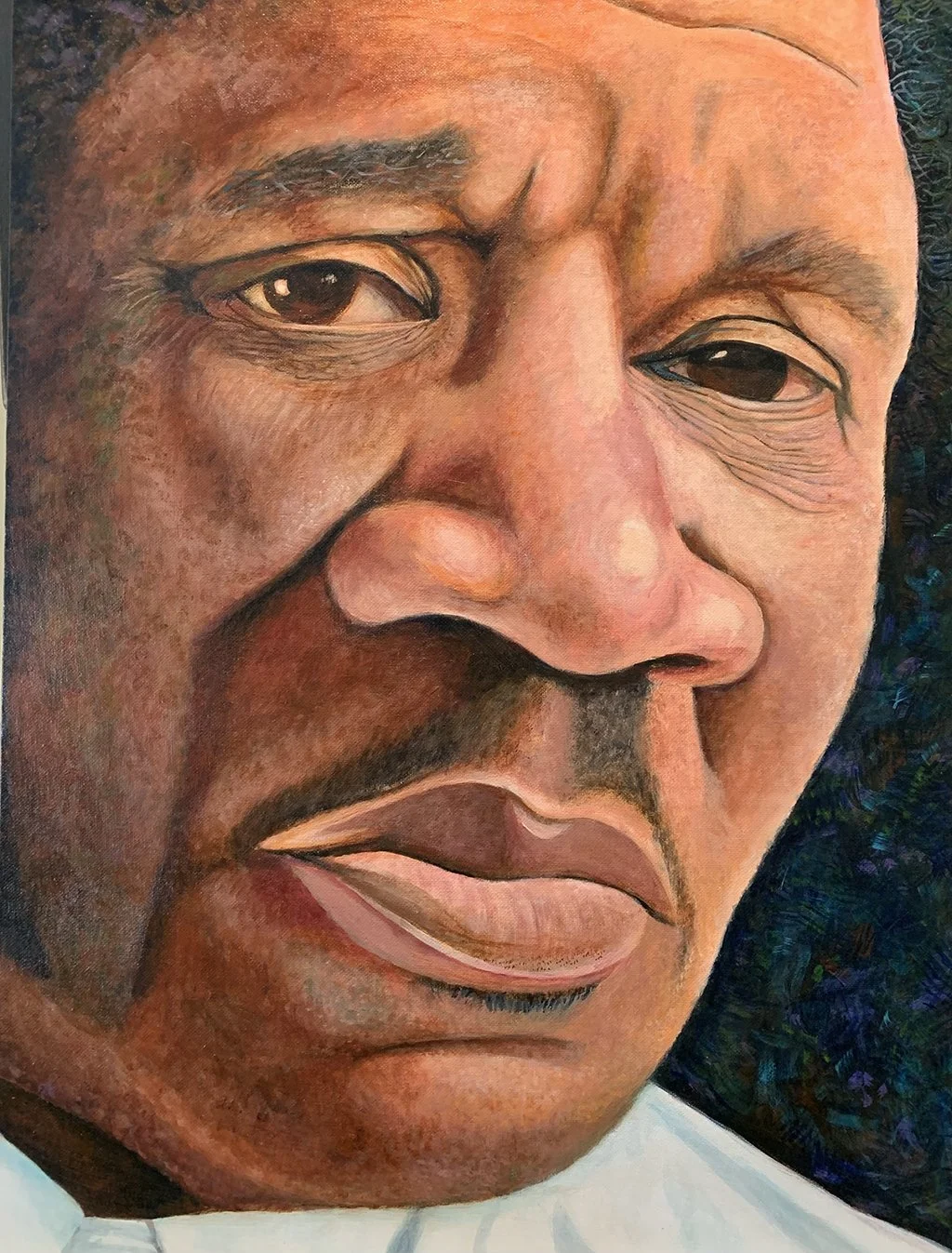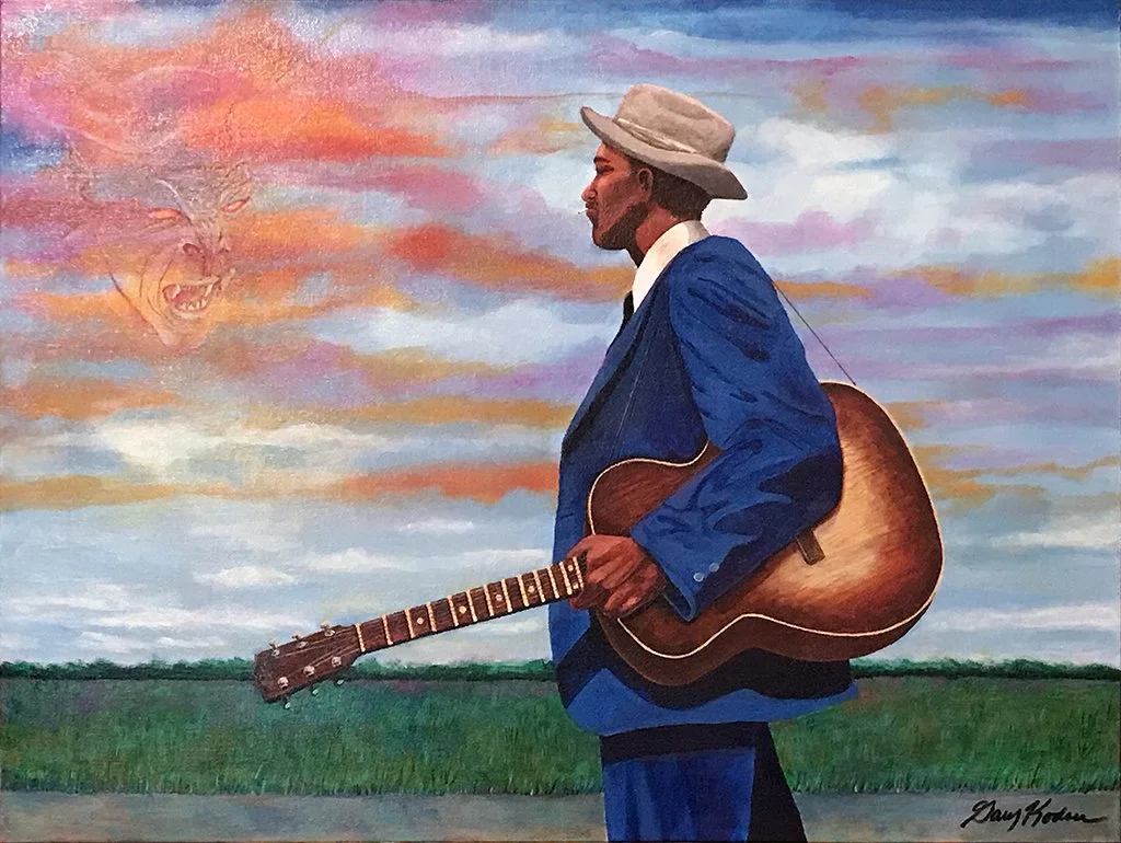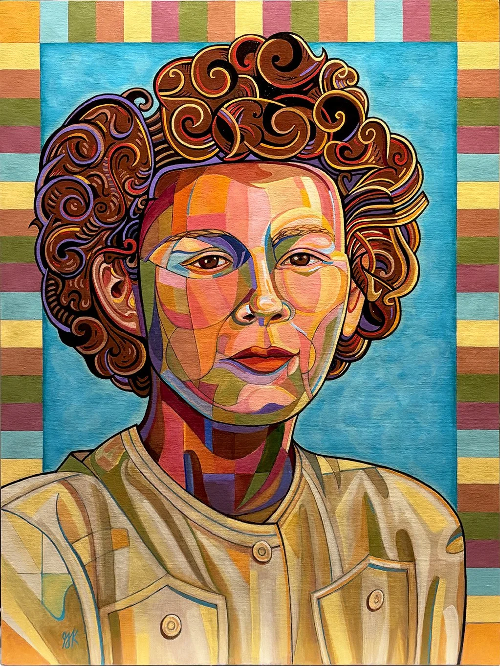 Original works of art — acrylic paint on canvas board, 18″ × 24″. Bold expressionist portraits and landscapes that celebrate color, character, and story.