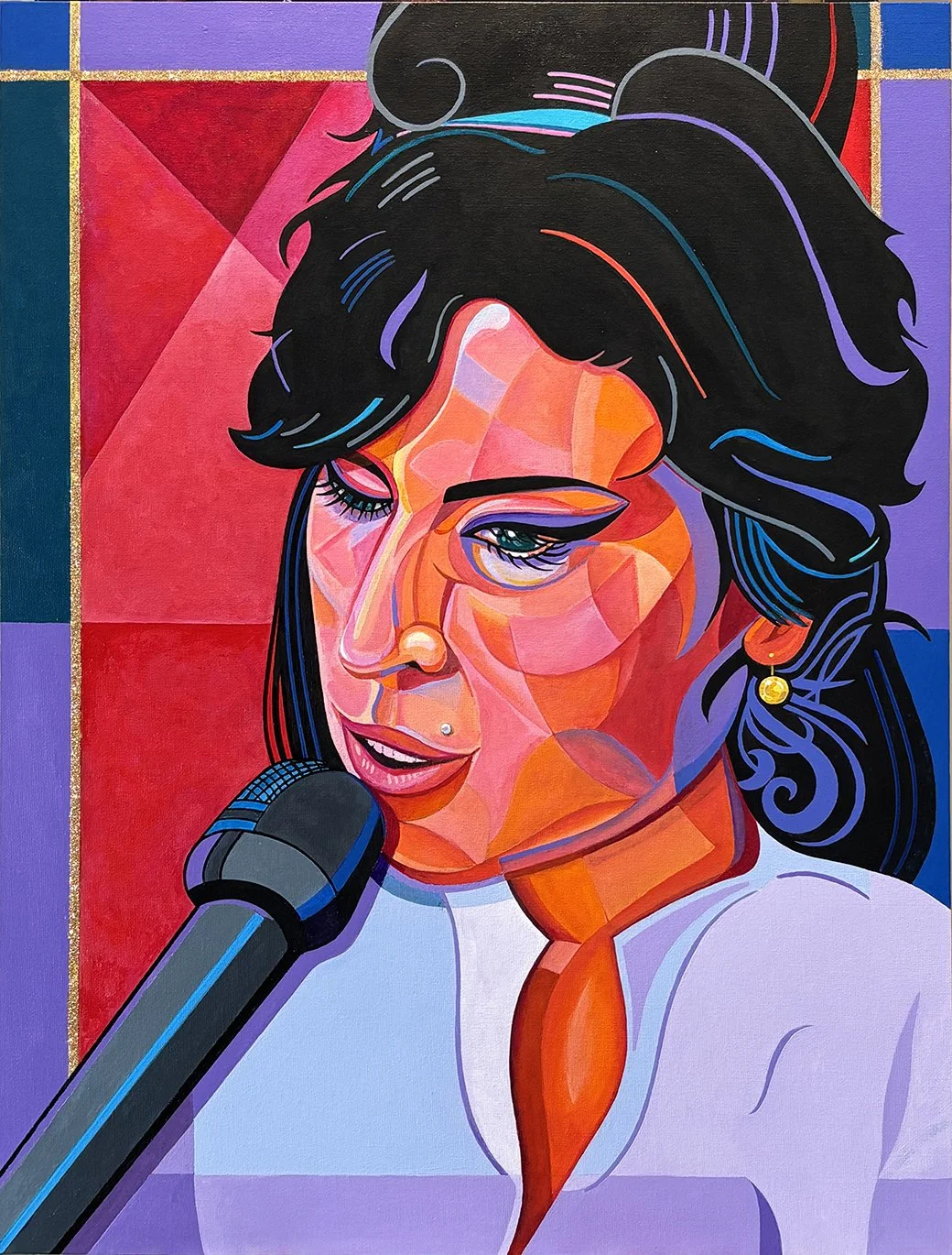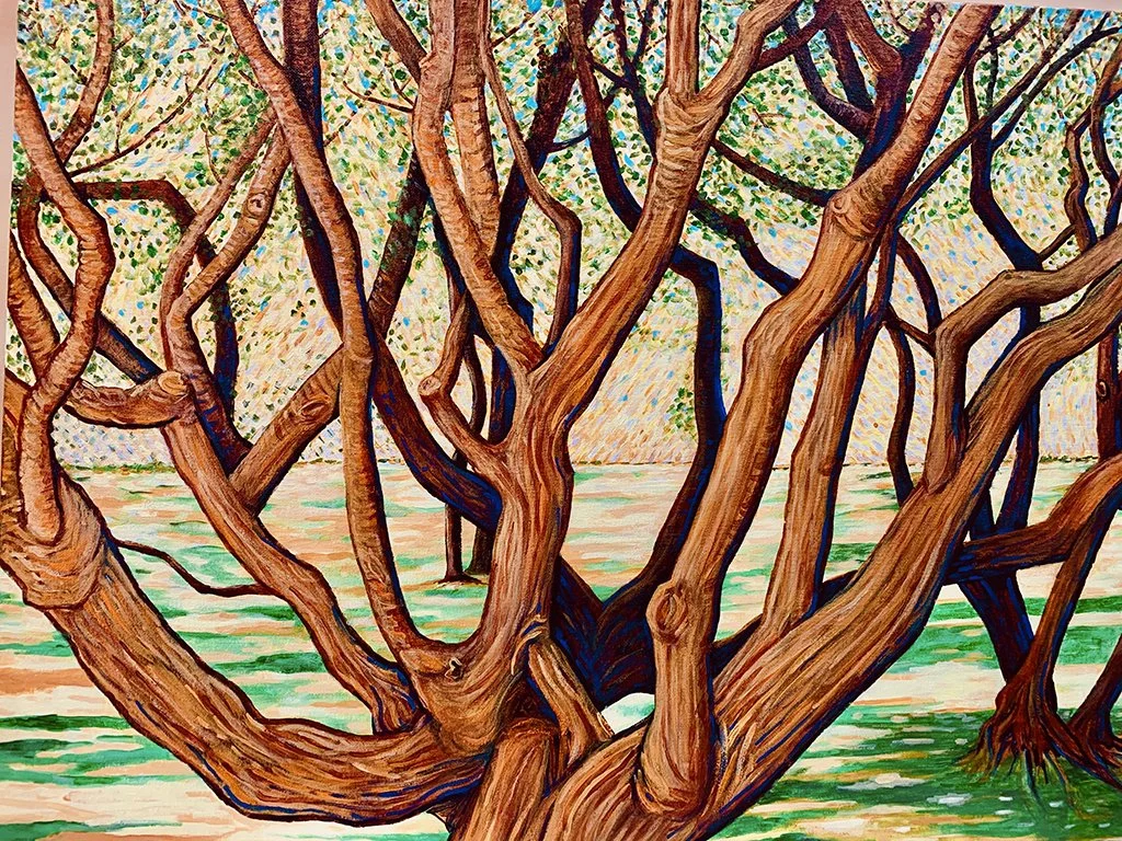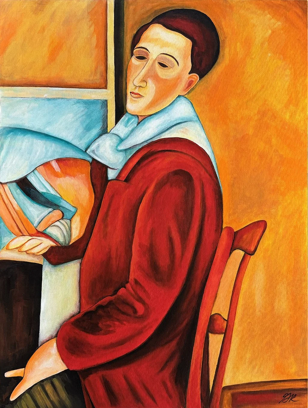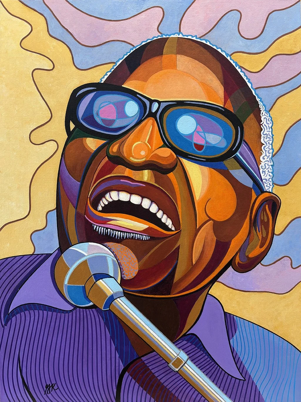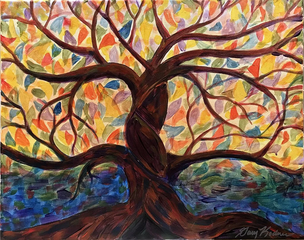Original works of art — acrylic paint on canvas board, 18″ × 24″. Bold expressionist portraits and landscapes that celebrate color, character, and story.