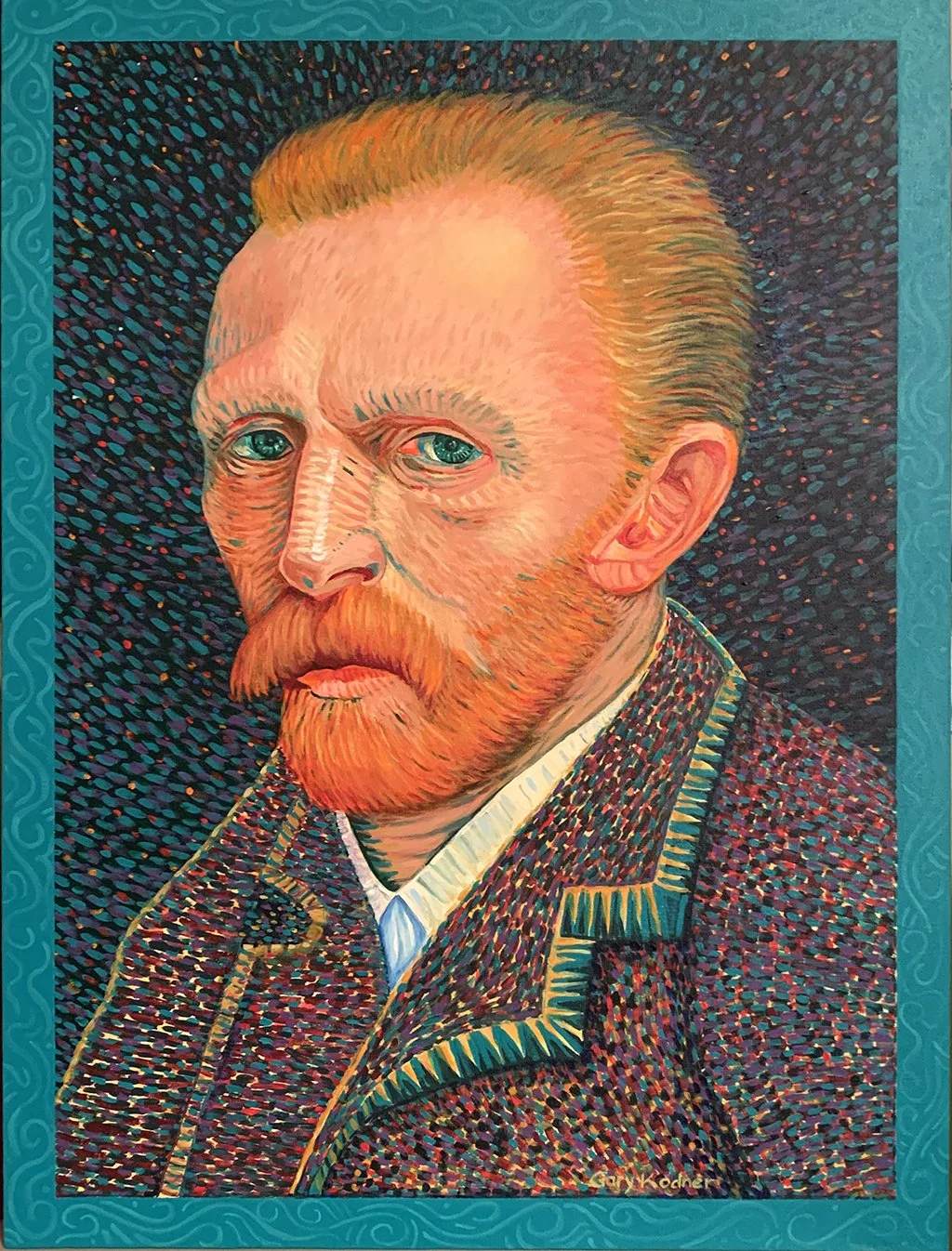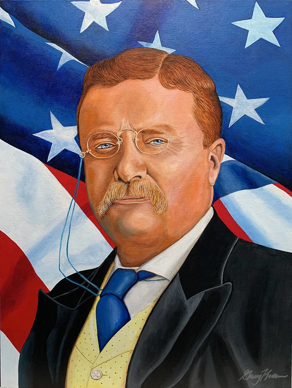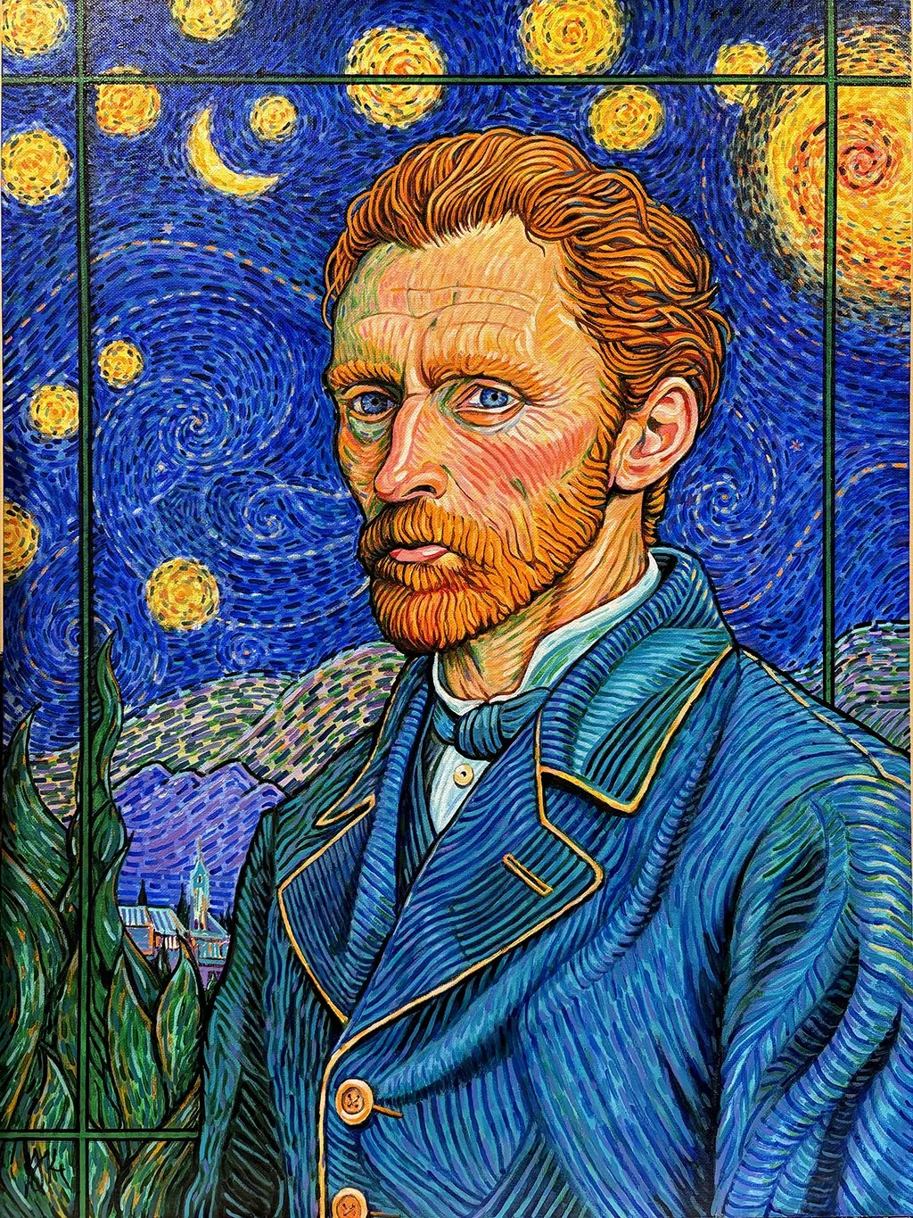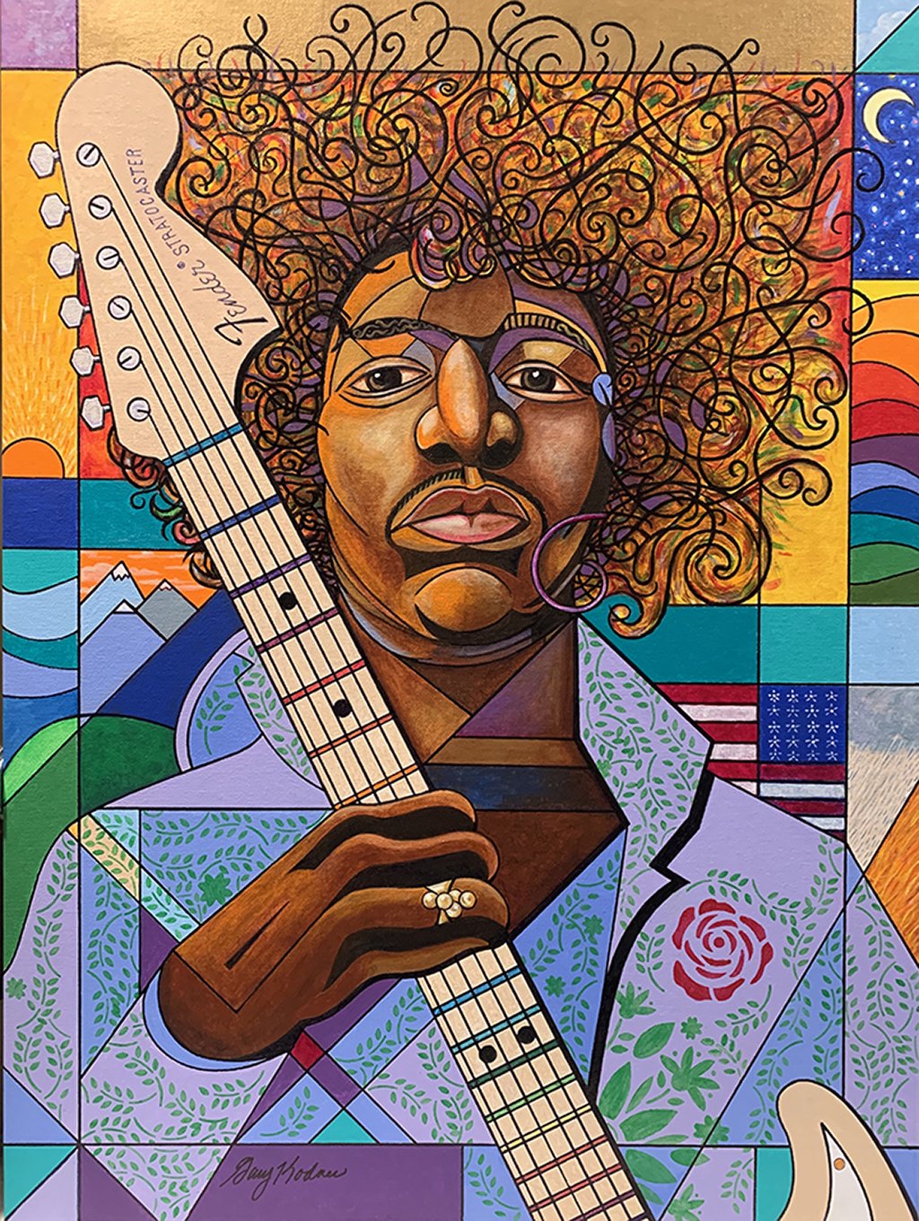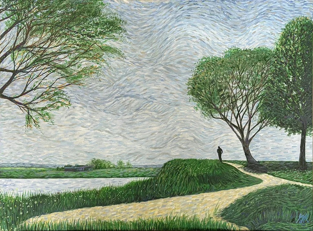 Original works of art — acrylic paint on canvas board, 18″ × 24″. Bold expressionist portraits and landscapes that celebrate color, character, and story.